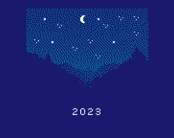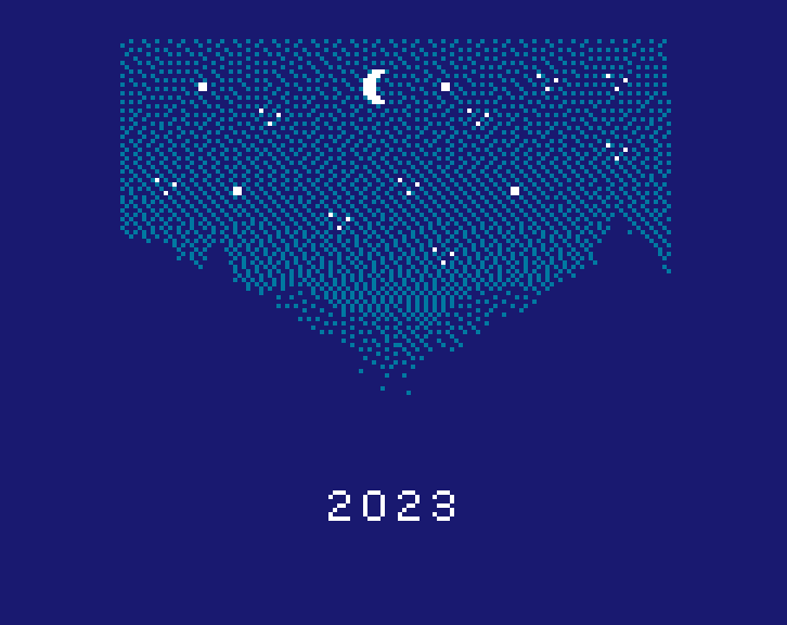 Welcome to Twenty Twenty Three! Each year, for the past decade or so, I've been making a 'cover art' piece to mark the new year. For 2023 I made it using Bitsy.